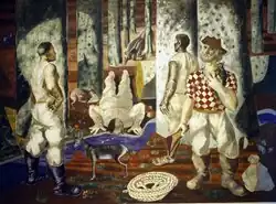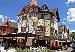 The word Brazil probably comes from the Portuguese word for brazilwood, a tree that once grew plentifully along the Brazilian coast.[37] In Portuguese, brazilwood is called pau-brasil, with the word brasil commonly given the etymology 'red like an ember', formed from brasa ('ember') and the suffix -il (from -iculum or -ilium).[38] It has alternatively been suggested that this is a folk etymology for a word for the plant related to an Arabic or Asian word for a red plant.[39] As brazilwood produces a deep red dye, it was highly valued by the European textile industry and was the earliest commercially exploited product from Brazil.[40] Throughout the 16th century, massive amounts of brazilwood were harvested by indigenous peoples (mostly Tupi) along the Brazilian coast, who sold the timber to European traders in return for assorted European consumer goods.[41]