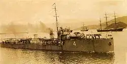After the declaration of war on the Central Powers in October 1917 the Brazilian Navy participated in the war. On 21 December 1917 the British government requested that a Brazilian naval force of light cruisers be placed under Royal Navy control and a squadron comprising the cruisers Rio Grande do Sul and Bahia, the destroyers Paraíba, Rio Grande do Norte, Piauí, and Santa Catarina, and the support ship Belmonte and the ocean-going tugboat Laurindo Pitta was formed, designated the Divisão Naval em Operações de Guerra ("Naval Division in War Operations"). The DNOG sailed on 31 July 1918 from Fernando de Noronha for Sierra Leone, arriving at Freetown on 9 August, and sailing onwards to its new base of operations, Dakar, on 23 August. On the night of 25 August, the division believed it had been attacked by a U-boat when the auxiliary cruiser Belmonte sighted a torpedo track. The purported submarine was depth-charged, fired on, and reportedly sunk by Rio Grande do Norte, but the sinking was never confirmed.