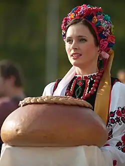 In many cultures, bread is a metaphor for basic necessities and living conditions in general. For example, a "bread-winner" is a household's main economic contributor and has little to do with actual bread-provision. This is also seen in the phrase "putting bread on the table". The Roman poet Juvenal satirized superficial politicians and the public as caring only for "panem et circenses" (bread and circuses).[67] In Russia in 1917, the Bolsheviks promised "peace, land, and bread."[68][69] The term "breadbasket" denotes an agriculturally productive region. In parts of Northern, Central, Southern and Eastern Europe bread and salt is offered as a welcome to guests.[70] In India, life's basic necessities are often referred to as "roti, kapra aur makan" (bread, clothes, and house).[71]