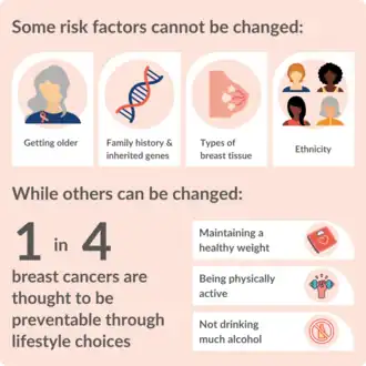 141. ^ a b c "Lifestyle-related Breast Cancer Risk Factors". www.cancer.org. Archived from the original on 27 July 2020. Retrieved 18 April 2018.