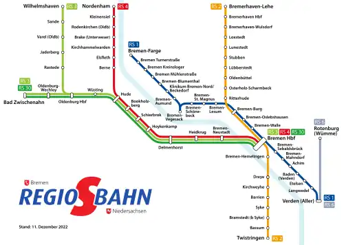 39. ^ "Regio-S-Bahn in Bremen gestartet" [Regio-S-Bahn in Bremen started] (in German). Radio Bremen. 12 December 2010. Archived from the original on December 14, 2010.