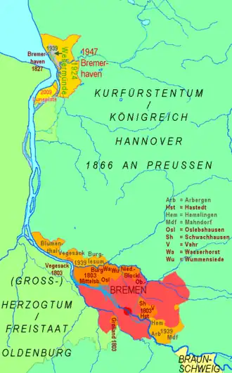 The territory of Bremen since 1800