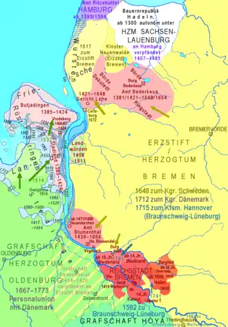 The territory of Bremen in the 14th and 18th centuries