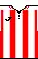 Brentford's predominant home colours are a red and white striped shirt, black shorts and red or black socks.[98] These have been the club's predominant home colours since the 1925–26 season, bar one season – 1960–61 – when yellow (gold) and blue were used, unsuccessfully.[99] The colours on entering the Football League, in 1920–21, were white shirts, navy shorts and navy socks.[100] Away kits have varied over the years, with the current colours being a light pink shirt and socks, with purple shorts, a first for the club. It includes a button-down detail with a ribbed collar. The Brentford badge features in purple and the sleeves have a printed stripe cuff.