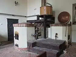 A brewery or brewing company is a business that makes and sells beer. The place at which beer is commercially made is either called a brewery or a beerhouse, where distinct sets of brewing equipment are called plant.[1] The commercial brewing of beer has taken place since at least 2500 BC;[2] in ancient Mesopotamia, brewers derived social sanction and divine protection from the goddess Ninkasi.[3][4] Brewing was initially a cottage industry, with production taking place at home; by the ninth century, monasteries and farms would produce beer on a larger scale, selling the excess; and by the eleventh and twelfth centuries larger, dedicated breweries with eight to ten workers were being built.[5]