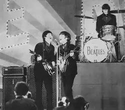 In February, Beatlemania swept the U.S., a development that deeply concerned Wilson, who felt the Beach Boys' supremacy had been threatened by the British Invasion.[89][90] Reflecting in 1966, he said, "The Beatles invasion shook me up a lot. [...] So we stepped on the gas a little bit."[78] The Beach Boys' May 1964 single "I Get Around", their first U.S. number-one hit, is identified by scholar James Perone as representing both a successful response to the British Invasion and the beginning of an unofficial rivalry between Wilson and the Beatles, principally Paul McCartney.[91] The B-side, "Don't Worry Baby", was cited by Wilson in a 1970 interview as "Probably the best record we've done".[92]