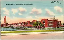 In the summer of 1915, a series of strikes imposed the eight-hour day on the town's factories; rather than moving business elsewhere, the success spread the eight-hour day throughout the Northeast.[73] Due to housing shortages in many US cities during World War I, the federal government created the US Housing Corporation. This resulted in 7 USHC housing developments being built in Bridgeport, notably Seaside Village in the South End and Black Rock Gardens in Black Rock. By this point, Remington Arms was producing 50% of America's cartridges during the war, with 17,000 employees, and homes for new workers were needed. The factory became a General Electric plant after the war.[74] The First World War had continued the city's expansion so that, on the eve of the Great Depression, there were more than 500 factories in Bridgeport, including Columbia Records' primary pressing plant and a Singer Sewing Machine factory.[75]