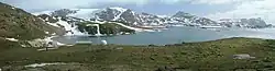 Over 99 per cent of the territory's land surface is covered by a permanent ice sheet, up to about 5,000 metres (16,000 ft) thick.[10] The highest peak in BAT was thought to be Mount Jackson, on the Antarctic Peninsula, at 3,184 metres (10,446 ft).[10] However, in 2017 Mount Hope was calculated to be taller at 3,239 metres (10,627 ft).[11]