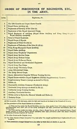- ^ The Quarterly Army List Part I, January 1945. Order of Precedence of the British Army. Page xiii. His Majesty's Stationery Office