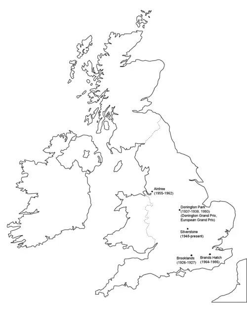| Aintree and Silverstone | 1955–1960 (alternating yearly) |