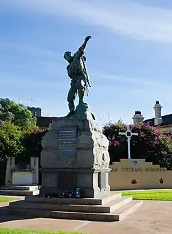 The Battle of Broken Hill took place on New Year's Day 1915 when two Afghan men, pushing an ice-cream cart, hoisted a Turkish Flag and fired upon a trainload of people who were headed to a New Years Day picnic. Since Australia was at war at the time with the Ottoman Empire, the men were first thought to be Turkish, but were later identified as being from the British colony of India (modern day Pakistan).[18][19] They killed four and wounded six, before they were killed by a group of policemen and soldiers.[20] The battle witnessed one of the first shots on Australian soil during World War I.