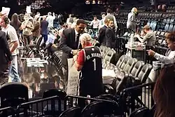 During the conference semifinals in 2014, while the Nets battled the Miami Heat, Brooklyn Nets and Barclays Center CEO Brett Yomark noticed the Brigade's effect on the arena, and he started to visit Section 114 distributing Nets' apparel. In 2016, the Nets hired Sean Marks as their general manager, who became an immediate supporter of the group.[61] During the 2018–19 season, the Nets reserved section 114 for passionate fans, and called it "The BK Block."[62] Although the Brigade is an independent fan group of the Nets, The Block[63] comprises mostly Brigade members.[64]