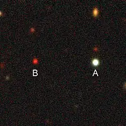 126. ^ French, Jenni R.; Casewell, Sarah L.; Dupuy, Trent J.; Debes, John H.; Manjavacas, Elena; Martin, Emily C.; Xu, Siyi (2023-03-01). "Discovery of a resolved white dwarf–brown dwarf binary with a small projected separation: SDSS J222551.65+001637.7AB". Monthly Notices of the Royal Astronomical Society. 519 (4): 5008–5016. arXiv:2301.02101. Bibcode:2023MNRAS.519.5008F. doi:10.1093/mnras/stac3807. ISSN 0035-8711.