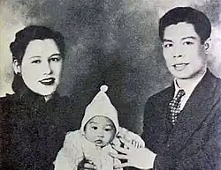 Lee as a baby with his parents, Grace Ho and Lee Hoi-chuen