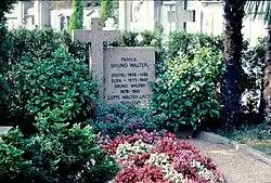 Bruno Walter died of a heart attack in his Beverly Hills home in 1962.[28] His final resting place is in the cemetery of Gentilino near Lugano in the Canton of Ticino, Switzerland, in the same grave where his wife and their daughter Gretel had already been buried. Their daughter Lotte (1903–1970) was buried there as well.
