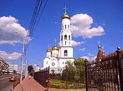 The unique architectural silhouette of the city, which was formed by the beginning of the 19th century, was skilfully expanded and enlarged by the end of the century. In the center, on the territory of the Spaso-Polikarpov Monastery, the Novopokrovsky Cathedral was erected (1862–1897), which emphasized the planning center of the district town with its scale. On the right flank there was a building of a trade and craft school, built by the architect N. A. Lebedev, which linked the building of the Arsenal plant and the Tikhvin church into a single chain of historical buildings.[24]
