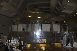 Fuller's first "continuous tension – discontinuous compression" geodesic dome (full sphere in this case) was constructed at the University of Oregon Architecture School in 1959 with the help of students.[31] These continuous tension – discontinuous compression structures featured single force compression members (no flexure or bending moments) that did not touch each other and were 'suspended' by the tensional members.