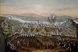 The history of Budapest began with an early Celtic settlement transformed by the Romans into the town of Aquincum,[34][35] capital of Lower Pannonia in the 1st century.[34] Following the foundation of Hungary in the late 9th century,[36] the area was pillaged by the Mongols in 1241.[37] It became royal seat in 1361,[37] with Buda becoming one of the European centers of renaissance culture by the 15th century under Matthias Corvinus.[38][39][40] The siege of Buda in 1541 was followed by nearly 150 years of Ottoman rule,[41] and after the reconquest of Buda in 1686, the region entered a new age of prosperity, with Pest-Buda becoming a global city after the unification of Buda, Pest and Óbuda in 1873.[42][43] By this time, Budapest had become the co-capital of the Austro-Hungarian Empire,[44] a great power that dissolved in 1918 following World War I. The city was also the focal point of the Hungarian Revolution of 1848, Battle of Budapest in 1945, and Hungarian Revolution of 1956.[45][46]