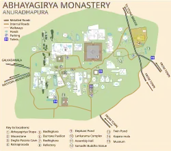When the Chinese monk Faxian visited the island in the early 5th century, he noted 5000 monks at Abhayagiri, 3000 at the Mahāvihāra, and 2000 at the Cetiyapabbatavihāra.[25] Faxian also obtained a Sanskrit copy of the Vinaya of the Mahīśāsaka at the Abhayagiri vihāra (c. 406). This was then translated into Chinese and remains extant in the Chinese Buddhist canon as Taishō Tripiṭaka 1421.[36]