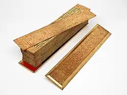 Although many versions of the texts of the early Buddhist schools exist, the only complete collection of texts to survive in a Middle Indo-Aryan language is the Tipiṭaka (triple basket) of the Theravāda school.[26] The other (parts of) extant versions of the Tripitakas of early schools include the Chinese Āgamas, which includes collections by the Sarvāstivāda and the Dharmaguptaka. The Chinese Buddhist canon contains a complete collection of early sutras in Chinese translation, their content is very similar to the Pali, differing in detail but not in the core doctrinal content.[27] The Tibetan canon contains some of these early texts as well, but not as complete collections. The earliest known Buddhist manuscripts containing early Buddhist texts are the Gandharan Buddhist Texts, dated to the 1st century BCE and constitute the Buddhist textual tradition of Gandharan Buddhism which was an important link between Indian and East Asian Buddhism.[28] Parts of what is likely to be the canon of the Dharmaguptaka can be found among these Gandharan Buddhist Texts.
