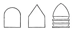 Among the first pointed or "conical" bullets were those designed by Captain John Norton of the British Army in 1832. Norton's bullet had a hollow base made of lotus pith that on firing expanded under pressure to engage with a barrel's rifling.[25] The British Board of Ordnance rejected it because spherical bullets had been in use for the previous 300 years.[26] Renowned English gunsmith William Greener invented the Greener bullet in 1836. Greener fitted the hollow base of an oval bullet with a wooden plug that more reliably forced the base of the bullet to expand and catch the rifling. Tests proved that Greener's bullet was effective, but the military rejected it because, being two parts, they judged it as too complicated to produce.[27]