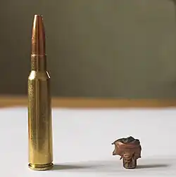 - Expanding bullets are designed to increase in diameter upon impact with a target, maximizing the transfer of energy and creating a larger wound channel.[40] These bullets are often made with a lead core and a copper jacket, though variations like MRX bullets have tungsten in its core.[41] The polymer tip in expanding bullets is designed to enhance aerodynamics for shooting at flat long-range trajectories.[42]