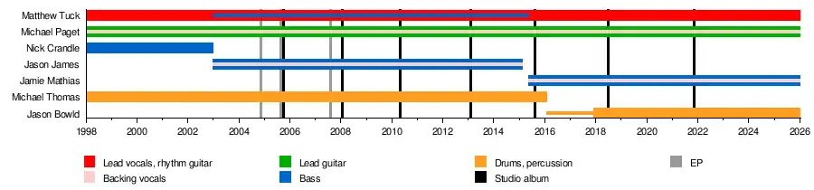 - Matthew "Matt" Tuck – lead vocals, rhythm guitar (1998–present); studio bass (2003–2015)