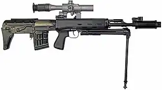 Some sniper rifles such as the American Barrett M95 and XM500,[22] German Walther WA 2000 and DSR-1,[23] Chinese QBU-88, Russian SVU, Polish Bor. It is also used for combat shotgun designs such as the Neostead and Kel-Tec KSG.[24]