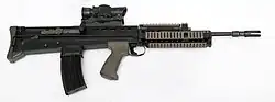 The L85A2 rifle, variant of the SA80 series of weapons.