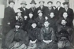 The government's municipal amalgamation program of 1888–1889 systematically excluded buraku communities from newly formed villages and towns, forcing them to remain as isolated administrative units, which further entrenched their segregation and poverty.[68] It was only after the Russo-Japanese War that the government, concerned about national unity and social stability, began to address the buraku issue through "improvement policies" (改善事業, kaizen jigyō). Starting in Mie Prefecture in 1905, these policies were primarily "moral" movements aimed at reforming the customs and habits of the burakumin, with little budget or attention to economic problems.[69][70] In response, affluent burakumin began to organize their own movements. The Dai Nippon Dōhō Yūwa Kai (Greater Japan Fraternal Conciliation Society), formed in 1903, and its successor the Yamato Dōshikai, advocated for "conciliation" (yūwa). This approach, often called the Yūwa Undō (Harmony Movement), was assimilationist, encouraging burakumin to prove their worth to mainstream society through hard work and patriotism.[71] The government feared a link between buraku communities and the socialist movement, which spurred the state to develop a national Yūwa policy.[72]