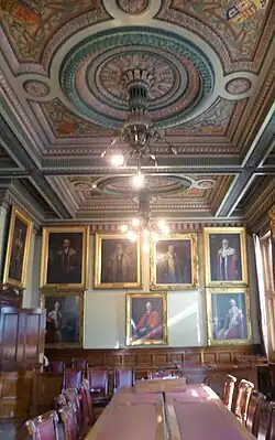 This was a title held by one of the bailies of the burgh who presided over a Dean of Guild Court which was given the specific duty of building control. The courts were abolished in 1975, with building regulation transferred to the relevant local authority.[14] Appointments to the office of Dean of Guild are still made in some areas: for instance the Lord Dean of Guild of Glasgow is described as the "second citizen of Glasgow" after the Lord Provost although the appointment is in the hands of the Merchants House of Glasgow, and not the city council.[12][15]