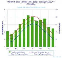 49. ^ "Burlington, Vermont, USA - Monthly weather forecast and Climate data". Weather Atlas. Retrieved July 4, 2019.