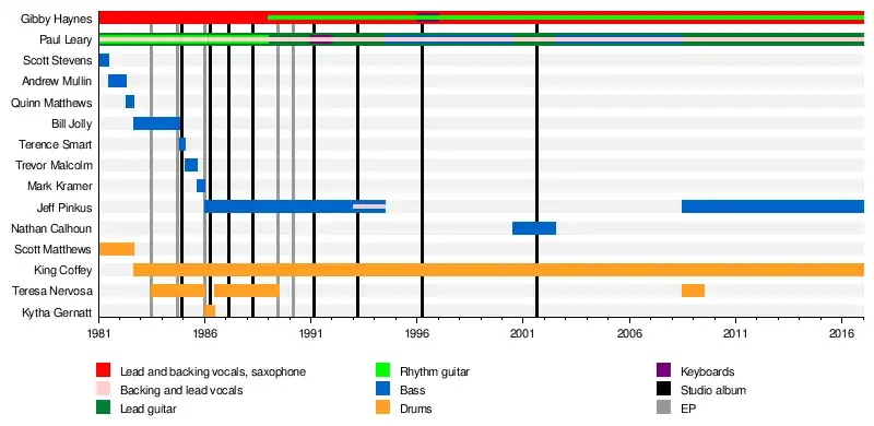 - Gibby Haynes – vocals, rhythm guitar, saxophone, bass, keyboards and effects (1981–present)