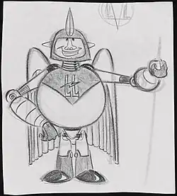 Further changes to the character followed during the development. Lasseter considered a one-man band toy to be an outdated idea and decided to change Tinny to an action figure, similar to G.I. Joe.[10] He said, "we started to analyze what a little boy would get these days that would make him so excited that he stopped playing with anything else." G.I. Joe was Lasseter's favorite character in childhood, but later Tinny evolved into a space hero similar to Major Matt Mason.[11] This character then went through various design iterations, initially named Lunar Larry, which was then changed to Tempus and then Morph, who wore a red space suit. Finally, the dummy character was redesigned into a stuffed cowboy doll named Woody and Morph became Buzz Lightyear.[10] Buzz was designed to be the ultimate child's toy. Lasseter recalled, "We reached back to every favorite idea we could remember. And that of course had to involve outer space". The team knew that being a space hero, Buzz's frame needed to be strong so that it could endure through many space missions, so they designed him with many holes for screws and rivets so that it was clear how he was constructed. They took inspiration from other action figures, incorporating a "karate chop action" into the arms. Buzz was also designed with pop out wings with landing lights to give children the ability to make him fly and a blinking red light bulb on his wrist to act as a laser. A button was included on his chest, which when pushed, provides digitised audio.[12] The lime green and purple color scheme in Buzz's design was created by Lasseter while sketching the character and was chosen as an apology to his wife for working late; lime green was the favorite color of Lasseter and purple was his wife's favorite.[13] The appearance of television actor Ed Kemmer was also an inspiration for Lightyear. Kemmer played Commander Buzz Corry in Space Patrol, one of the first science-fiction series on American television.[14][15]