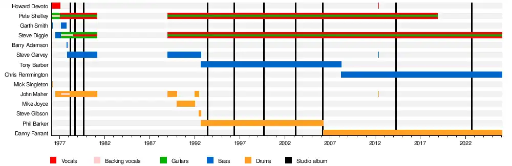 - Steve Diggle – guitars, lead vocals (1977–1981, 1989–present); bass (1976–1977)
