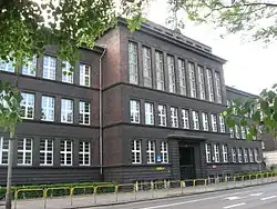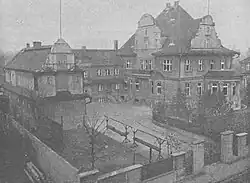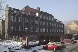During the German invasion of Poland, which started World War II, the Germans carried out mass arrests of local Poles. On September 1, 1939, the day of the outbreak of the war, Adam Bożek, the chairman of the Upper Silesian district of the Union of Poles in Germany, was arrested in Bytom and then deported to the Dachau concentration camp.[16] The Germans carried out searches in the Polish gymnasium and the local Polish community centre, 20 Polish activists were arrested on September 4, 1939, then released and arrested again a few days later to be deported to the Buchenwald concentration camp.[17] Also three Polish teachers, who had not yet fled, were arrested, while the assets of the Polish bank were confiscated.[18] The Einsatzgruppe I entered the city on September 6, 1939, to commit atrocities against Poles.[19] Many Poles were conscripted to the Wehrmacht and died on various war fronts, including 92 former students of the Polish gymnasium.[20] The Beuthen Jewish community was liquidated via the first ever Holocaust transport to be exterminated at Auschwitz-Birkenau.[21][22][23]