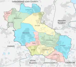 The city of Bytom is divided into 12 districts (Polish: Dzielnice), year of inclusion within the city limits in brackets: