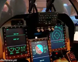 The aircraft has three large Multifunction Colour Displays (MFD) and smart Heads-Up Display (HUD) with built-in symbol generation capability. A center stick is used for pitch and roll control while rudder pedals control yaw. A throttle is located to the left of the pilot. The cockpit incorporates hands-on-throttle-and-stick (HOTAS) controls. The pilot sits on a Martin-Baker Mk-16LE zero-zero ejection seat. The cockpit incorporates an electronic flight instrument system (EFIS) and a wide-angle, holographic head-up display (HUD), which has a minimum total field of view of 25 degrees. The EFIS comprises three color multi-function displays, providing basic flight information, tactical information, and information on the engine, fuel, electrical, hydraulics, flight control, and environment control systems. The HUD and MFD can be configured to show any available information. Each MFD is 20.3 cm (8.0 in) wide and 30.5 cm (12.0 in) tall and is arranged side by side in portrait orientation. The central MFD is placed lowest to accommodate a control panel between it and the HUD.[31]