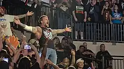 Punk suffered his first ECW singles loss on the January 9, 2007 episode, ending his six-month undefeated streak against Hardcore Holly.[66] Punk later competed unsuccessfully in the WrestleMania 23 Money in the Bank ladder match on April 1.[67] The following weeks saw Punk entangled in the New Breed vs. ECW Originals feud, initially aligning with the New Breed after being courted by both factions, turning heel in the process.[68][69][70] Punk's heel turn proved short-lived, as he betrayed the New Breed by attacking leader Elijah Burke during a multi-man tag team match, reestablishing himself as a fan favorite.[71] Punk defeated Burke in his first singles PPV match at Judgment Day on May 20,[72] then closed the rivalry at One Night Stand on June 3 by teaming with Tommy Dreamer and The Sandman to defeat the New Breed in a tables match.[73]