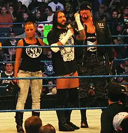 Punk made a special appearance at the ROH show Unscripted II on February 11, 2006, when the original card had to be scrapped due to Low Ki leaving ROH the week prior.[37] In addition, most of the ROH roster contracted to TNA were pulled from the show because of a snowstorm that TNA officials thought might prevent performers from reaching the TNA's Against All Odds event scheduled the next day.[44][45] In the main event, Punk teamed with Bryan Danielson to defeat Adam Pearce and Jimmy Rave in a tag team match.[45]