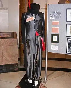 Calloway was the first African-American to have a nationally syndicated radio program.[5] In 1993, Calloway received the National Medal of Arts from the United States Congress.[6] He posthumously received the Grammy Lifetime Achievement Award in 2008. His song "Minnie the Moocher" was inducted into the Grammy Hall of Fame in 1999, and added to the Library of Congress' National Recording Registry in 2019.[7] In 2022, the National Film Registry selected his home films for preservation as "culturally, historically or aesthetically significant films".[8] He was inducted into the Big Band and Jazz Hall of Fame and the International Jazz Hall of Fame.