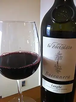 In Piedmont, the grape was sometimes used as an "illegal" blending partner with Nebbiolo for DOC classified Barolo with the intention of adding colour and more fruit flavours. In the DOCs of Langhe and Monferrato, Cabernet is a permitted blending grape with Nebbiolo as well as Barbera. Wines composed of all three grape varieties are often subjected to considerable oak treatment to add a sense of sweet spiciness to compensate for the high tannins of Cabernet Sauvignon and Nebbiolo, the high acidity of Barbera. There are varietal styles of Cabernet Sauvignon produced in Piedmont, with qualities varying depending on the location. In other regions of northern Italy, such as Lombardy, Emilia-Romagna and Friuli-Venezia Giulia, the grape is often blended with Merlot to produce Bordeaux style blends. In the Veneto region, Cabernet Sauvignon is sometimes blended with the main grapes of Valpolicella-Corvina, Molinara and Rondinella. In southern Italy, the grape is mostly used as a blending component with local varieties-such as Carignan in Sardinia, Nero d'Avola in Sicily, Aglianico in Campania and Gaglioppo in Calabria.[2]