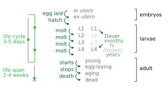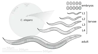 - ^ Kimble J, Hirsh D (June 1979). "The postembryonic cell lineages of the hermaphrodite and male gonads in Caenorhabditis elegans". Developmental Biology. 70 (2): 396–417. doi:10.1016/0012-1606(79)90035-6. PMID 478167.