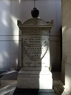Rodney died June 10, 1824, in Buenos Aires, and was buried there in the Victoria district British Cemetery. His remains were moved to a crypt at St. John's Cathedral in Buenos Aires. The crypt is at the peristyle of the entrance of the cathedral.[2]
