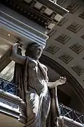 As of 2015, the hotel has 3,960 rooms and suites in six towers.[86] In addition to its regular rooms and suites, Caesars Palace offers penthouse suites,[71] and 14 villa suites named after notable Romans.[56] A number of Roman statues were imported from Florence, Italy, valued at over $150,000.[58] Statues of Julius Caesar and emperors such as Augustus and Nero are particularly common at the Palace. There are many variations of Augustus throughout, including two copies of the Prima Porta Augustus. Author Margaret Malamud notes the contrast between his "sober and pious figure" in the Olympic Lounge and the "statue of Nero and his lyre with which it is paired".[56] There is a 25 feet (7.6 m) statue of the goddess Fortuna. One statue of David in the interior is an exact replica of an early 16th-century Michelangelo masterpiece, standing 18 feet (5.5 m) high and weighing over nine tons.[87]