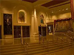 Many international performers have performed at the hotel, including Frank Sinatra,[94] Sammy Davis Jr.,[95] Rod Stewart,[96] Celine Dion,[96] Cher,[97] Bette Midler,[97] Liberace,[98] Liza Minnelli,[99] Elton John,[100] George Burns,[101] Pat Cooper,[102] Diana Ross,[103] Teresa Teng,[104] Paul Anka,[105] Julio Iglesias,[106] Judy Garland,[107] David Copperfield,[108] Stevie Nicks,[109] Dolly Parton,[110] Tony Bennett,[111] Steve and Eydie,[112] Gloria Estefan,[113] Phyllis Diller,[102] Luis Miguel,[109] Ike & Tina Turner,[114] Janet Jackson,[115] Shania Twain,[96] Jerry Seinfeld,[115] Harry Belafonte,[116] Louie Anderson,[117] Ricky Martin,[115] Mariah Carey,[118] Deana Martin,[119] B.B. King,[120] The Moody Blues,[121] Pilita Corrales,[122] Matt Goss[123] and Adele.[124] In mid-1996, a new venue known as "Caesars Magical Empire" was created on the property, showcasing magicians such as Michael Ammar,[125] Jon Armstrong,[126] Lee Asher,[127] Whit Haydn,[128] Jeff "Magnus" McBride,[129] and Alain Nu.[130] The "Empire" was closed on November 30, 2002, after which the structure was razed to make room for a large concert hall created for singer Celine Dion.[131] The Colosseum at Caesars Palace is a 4,296-seat entertainment venue with a 22,450 square feet (2,086 m2) stage, which was originally built at a cost of $95-million for Celine Dion's show, "A New Day...", in 2003.[132][133] A success, the Colosseum show earned almost $175,000 on average per night[134] and grossed $500 million in four years.[135] The venue has since hosted performances by numerous other artists.[133] Gloria Estefan performed a special seven-day concert in October 2003 for the launch of her album Unwrapped, titled Live & Unwrapped.[132] In May 2007, Bette Midler was announced as Dion's formal replacement, performing 100 shows a year,[135] with Elton John continuing to perform his popular Red Piano show 50 nights a year while Midler was on hiatus. After taking a three-year hiatus, Cher, following her Farewell Tour, returned to Caesars Palace with a three-year contract, performing 200 shows beginning May 6, 2008.[136]