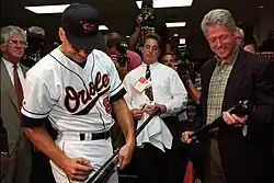 Ripken with President Bill Clinton after breaking Lou Gehrig's consecutive games played streak