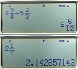 Large-sized figures are often used to improve readability; while using decimal separator (usually a point rather than a comma) instead of or in addition to vulgar fractions. Various symbols for function commands may also be shown on the display. Fractions such as 13 are displayed as decimal approximations, for example rounded to 0.33333333. Also, some fractions (such as 17, which is 0.14285714285714; to 14 significant figures) can be difficult to recognize in decimal form; as a result, many scientific calculators are able to work in vulgar fractions or mixed numbers.