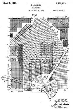 In 1921, Edith Clarke invented the "Clarke calculator", a simple graph-based calculator for solving line equations involving hyperbolic functions. This allowed electrical engineers to simplify calculations for inductance and capacitance in power transmission lines.[19]