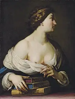 ![]() Detail of painting The Muses Urania and Calliope by Simon Vouet, in which she holds a copy of the Odyssey | |